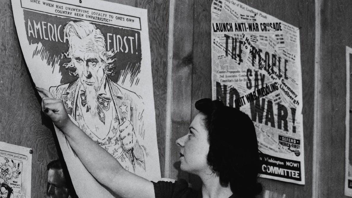 The above sentiments inevitably lead to an America First stance. During the 1930s, the America First movement would grow into one of the largest anti-war movements in American history.
